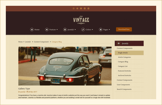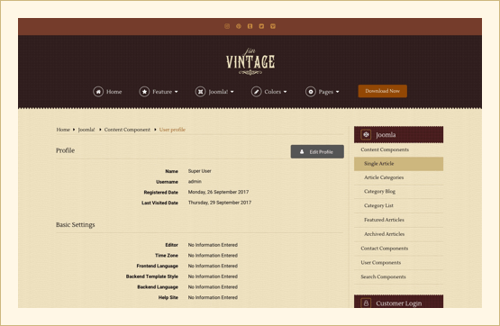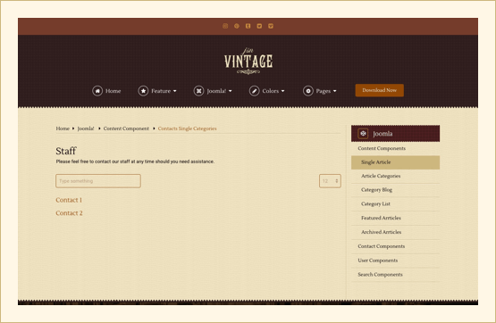 Another remarkable feature of JSN Vintage 2 is style for default Joomla!. Furthermore extended styles for EasyDiscuss and EasySocial, JSN Vintage 2 also display beautifully default Joomla! content by optimized front-end designs for Content components, Users components, Contact components and Search Components.