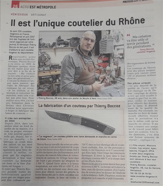 Article du Progrès "Amoureux de la coutellerie, Thierry Boccoz vie de sa passion"
